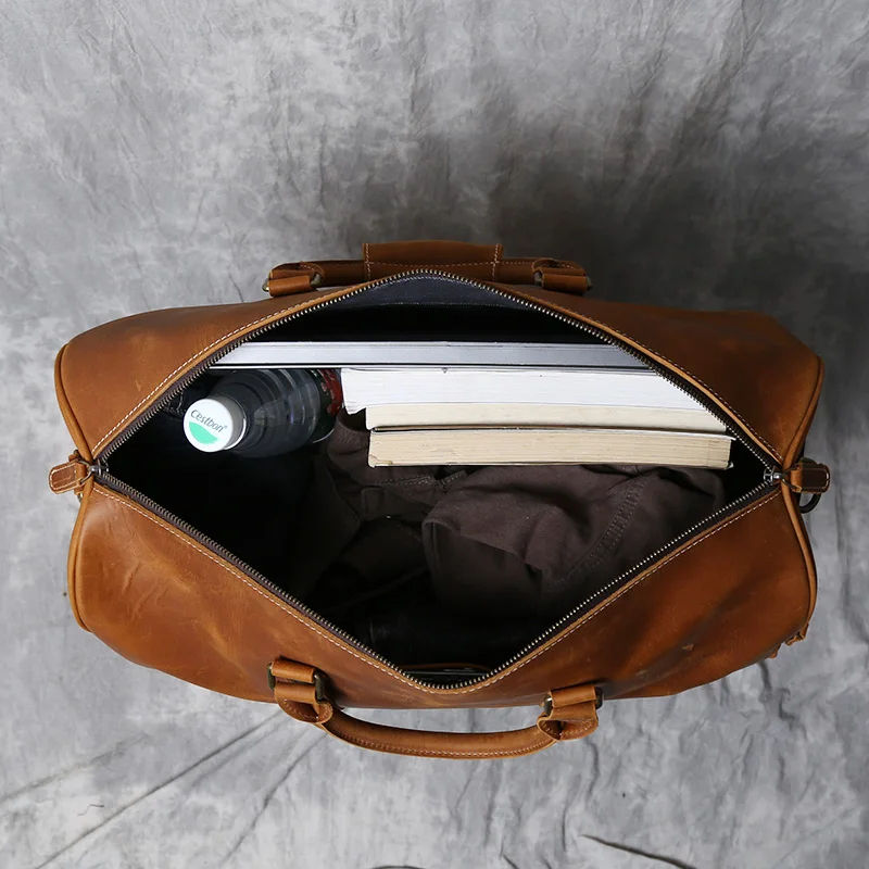 กระเป๋าดัฟเฟิลกระเป๋าเดินทางของผู้ชายหนังม้าแท้วินเทจพร้อมช่องซิปใช้ซ้ำได้สำหรับการเดินทาง