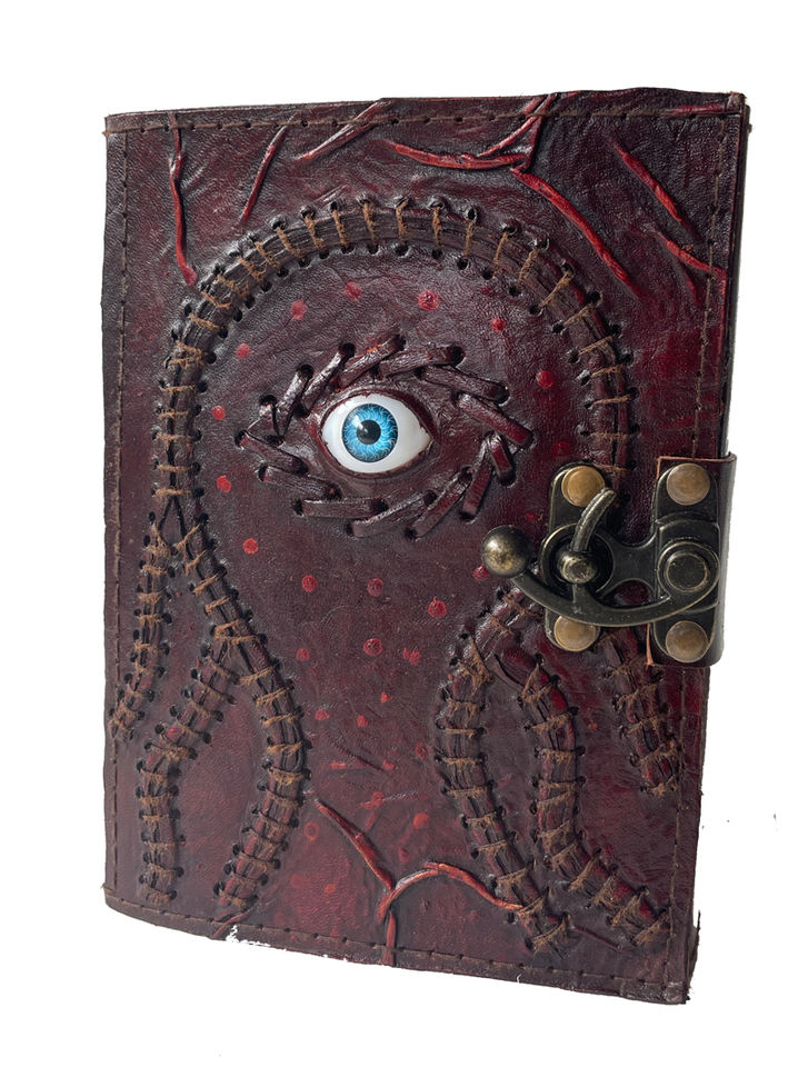 วารสารหนังแท้วินเทจพร้อมกระดาษขอบหยักสมุดบันทึกแผนที่สามตาคาถาโบราณสมุดโน้ตสยองขวัญพิเศษ
