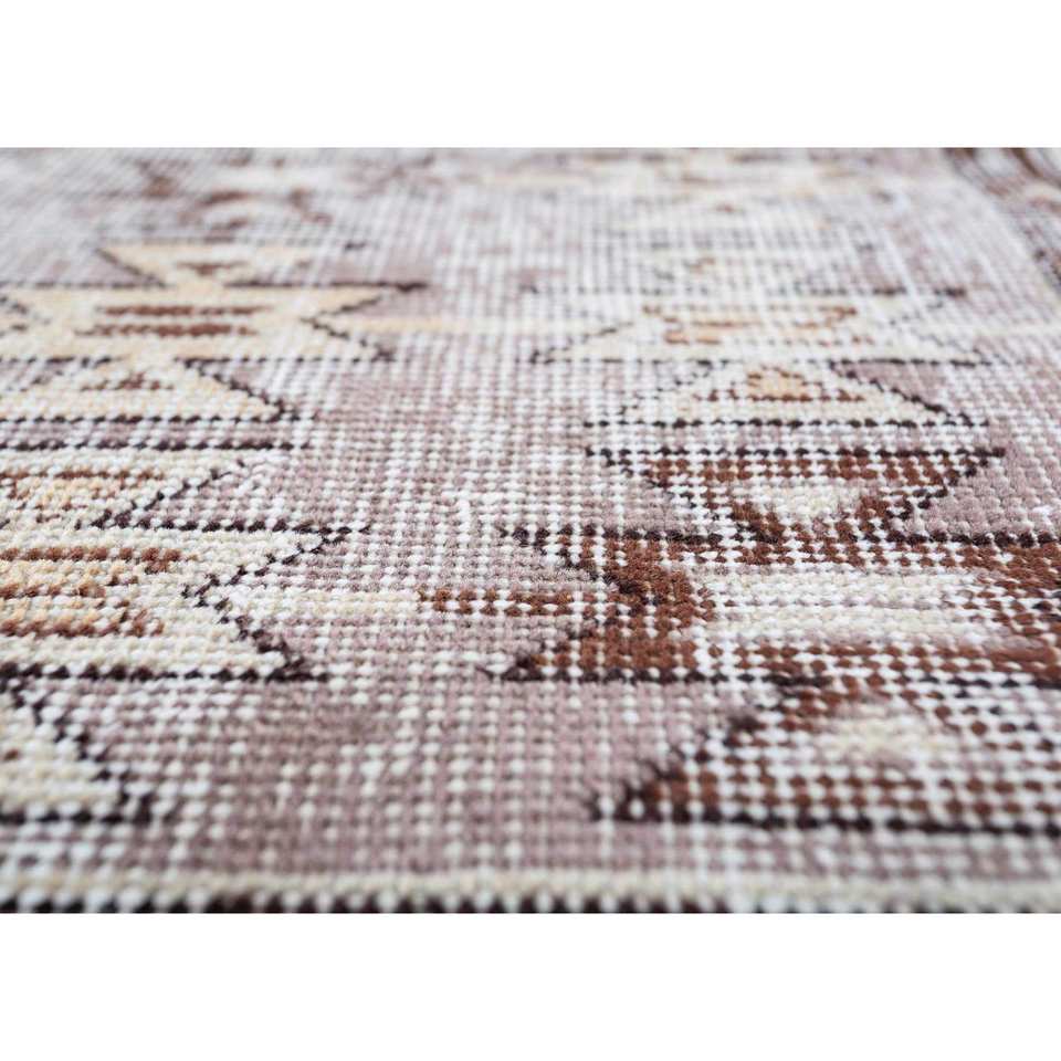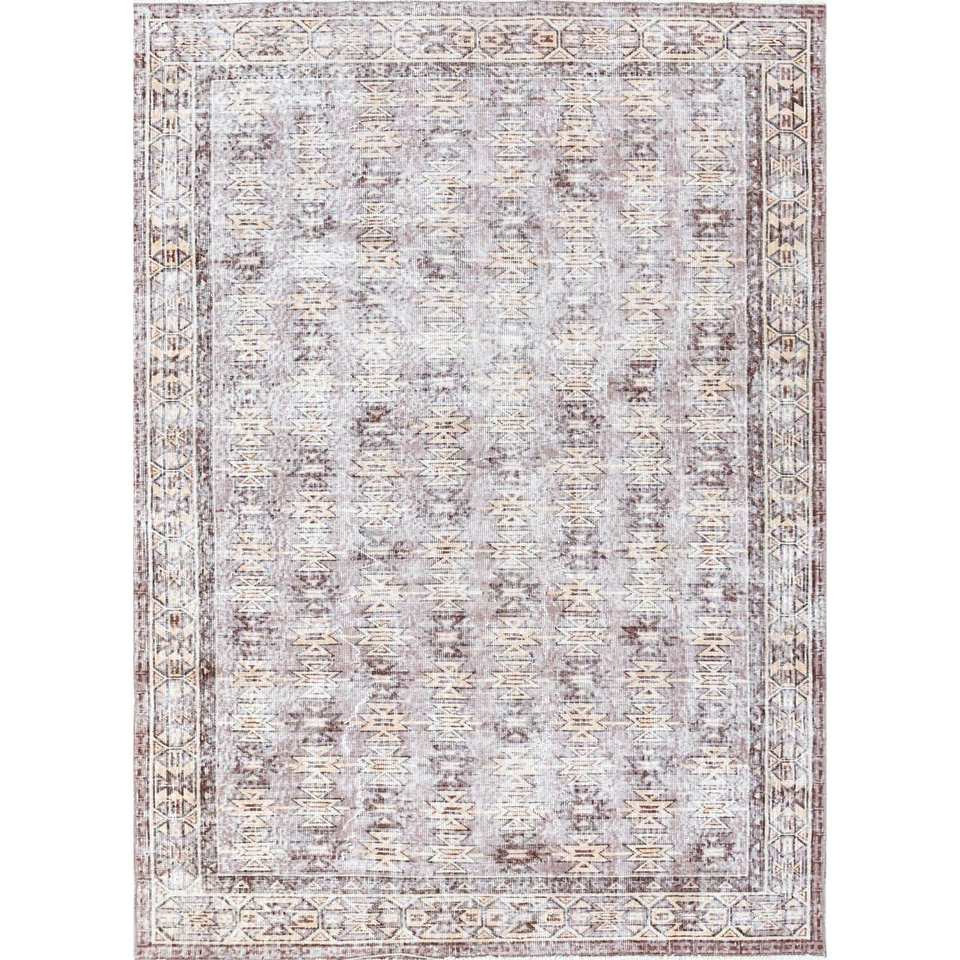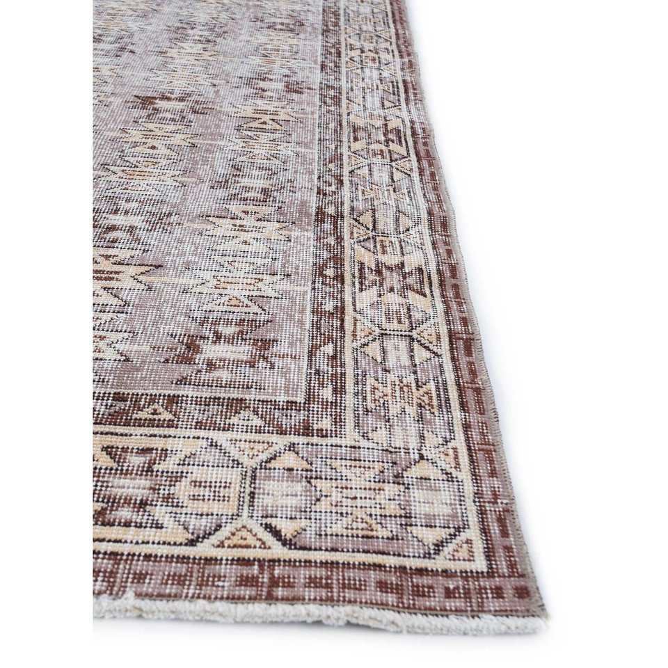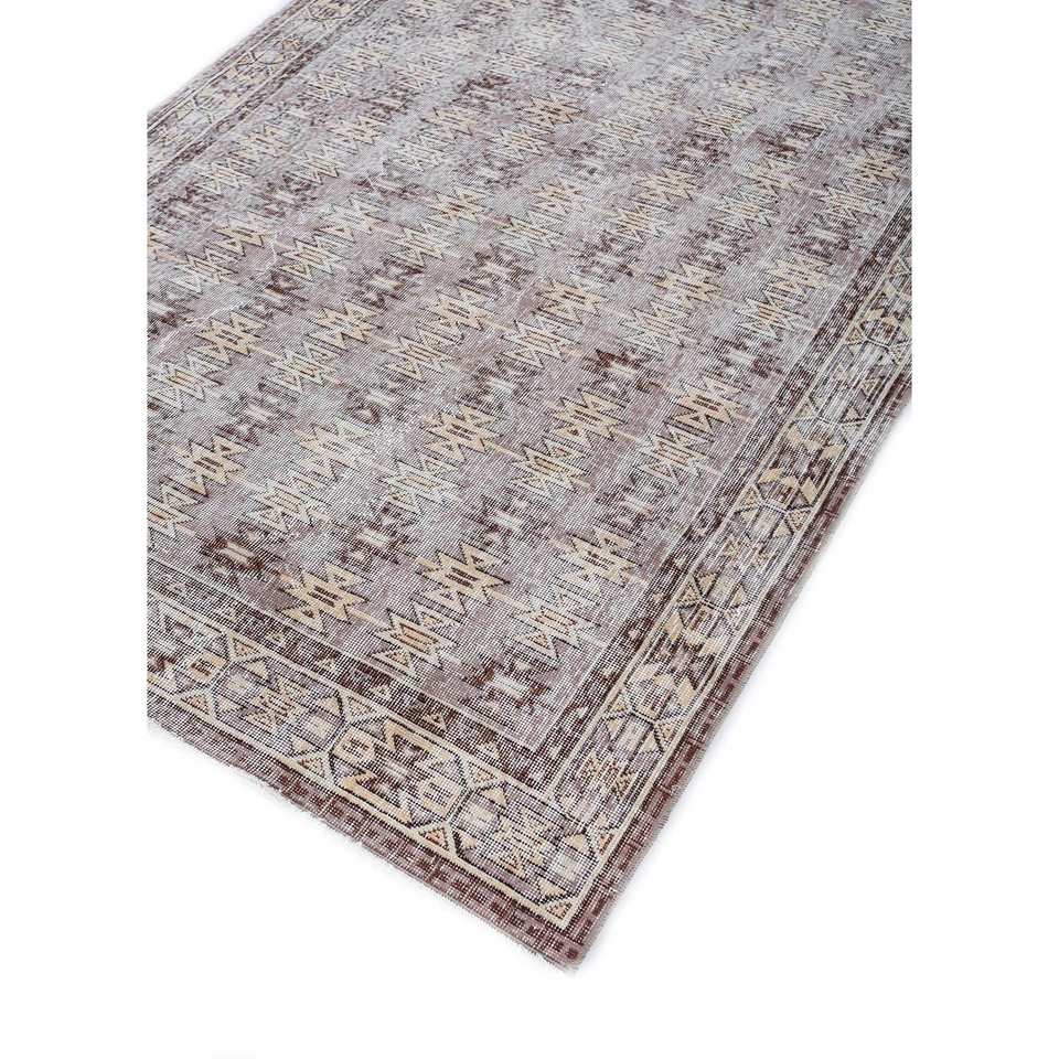 พรมขนสัตว์ถักมือลายเรขาคณิตสไตล์วินเทจ สีเบจและสีน้ำตาล สำหรับห้องนั่งเล่นหรือทางเดินในบ้าน ดีไซน์รูปทรงสี่เหลี่ยมผืนผ้าแบบนามธรรม รุ่น Pae-2228