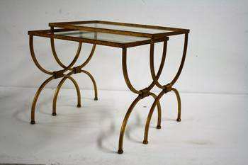 โต๊ะวางบนกระจกสไตล์วินเทจชุดสแตนเลส2ชิ้นทำจากเหล็กอ่อนของตกแต่งบ้านเฟอร์นิเจอร์โลหะรูปทรงกลมสินค้าสุดหรู