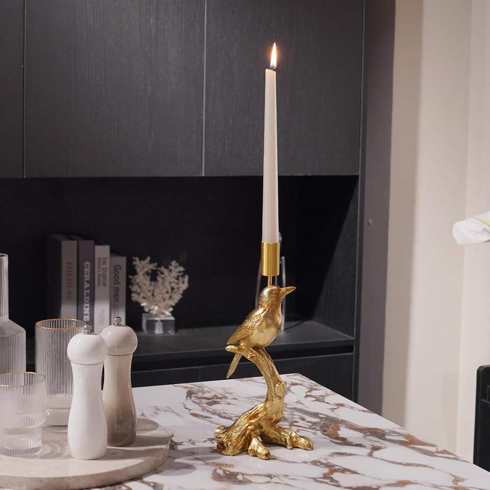 เชิงเทียนคริสตัลเรซินสีทองรูปนกสไตล์วินเทจของตกแต่งบ้านในร่มสำหรับวันหยุดคริสต์มาสงานแต่งงานเชิงเทียนสุดหรู
