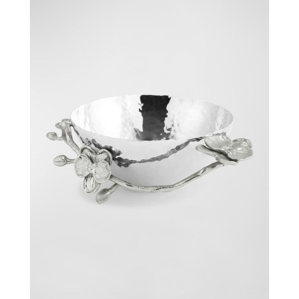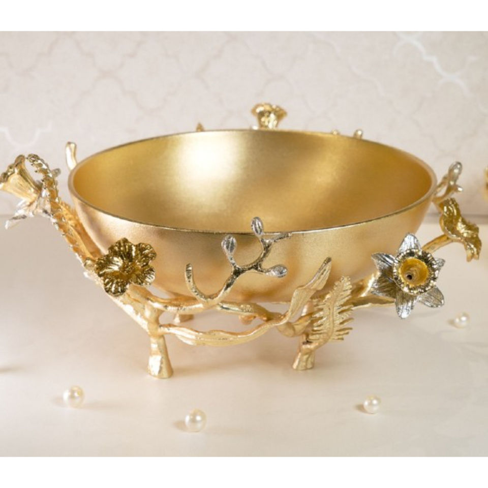 ชามสลัดอลูมิเนียมทุบด้วยลายดอกไม้สไตล์วินเทจสีทองสำหรับงานแต่งงานและงานอีเวนต์ราคาประหยัด