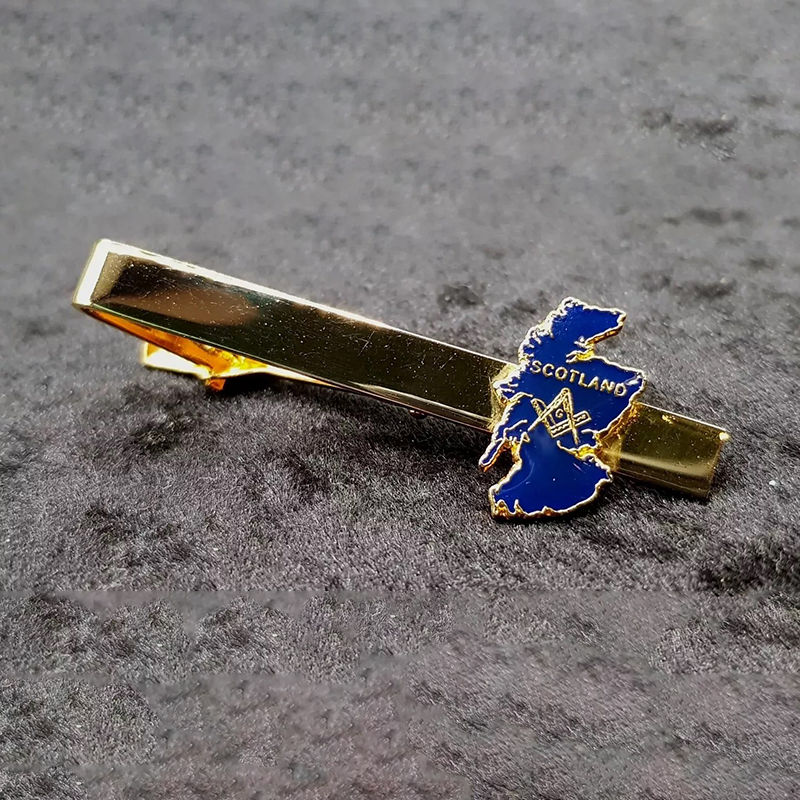 คลิปหนีบเนคไทลายสก็อตเคลือบสีทองวินเทจ