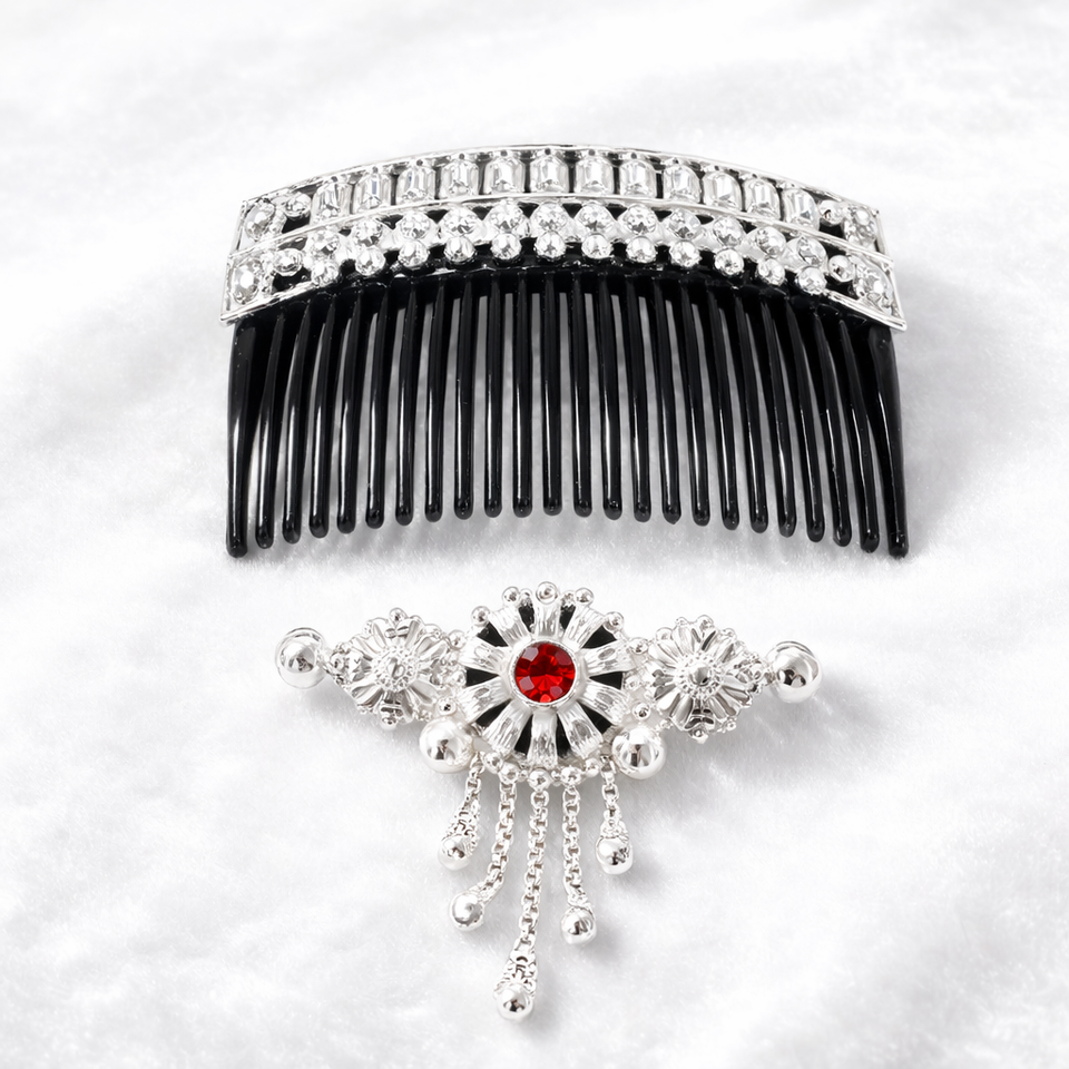 หวีผมทำมือชุบทองวินเทจ รักษ์โลก กันน้ำ ดีไซน์หรูหราทันสมัย ประดับเปลือกโลหะผสม มินิ ประดับด้วยหินสีแดงรูปดอกไม้ สำหรับเจ้าสาว