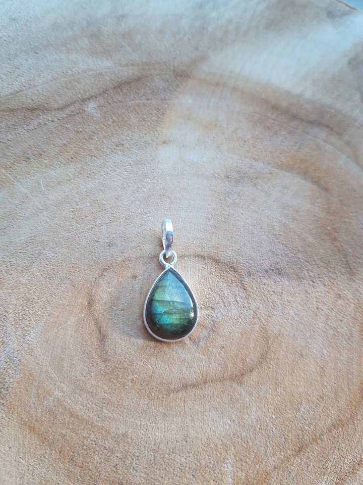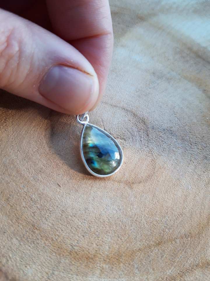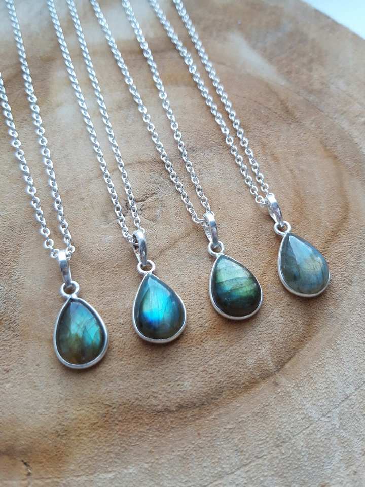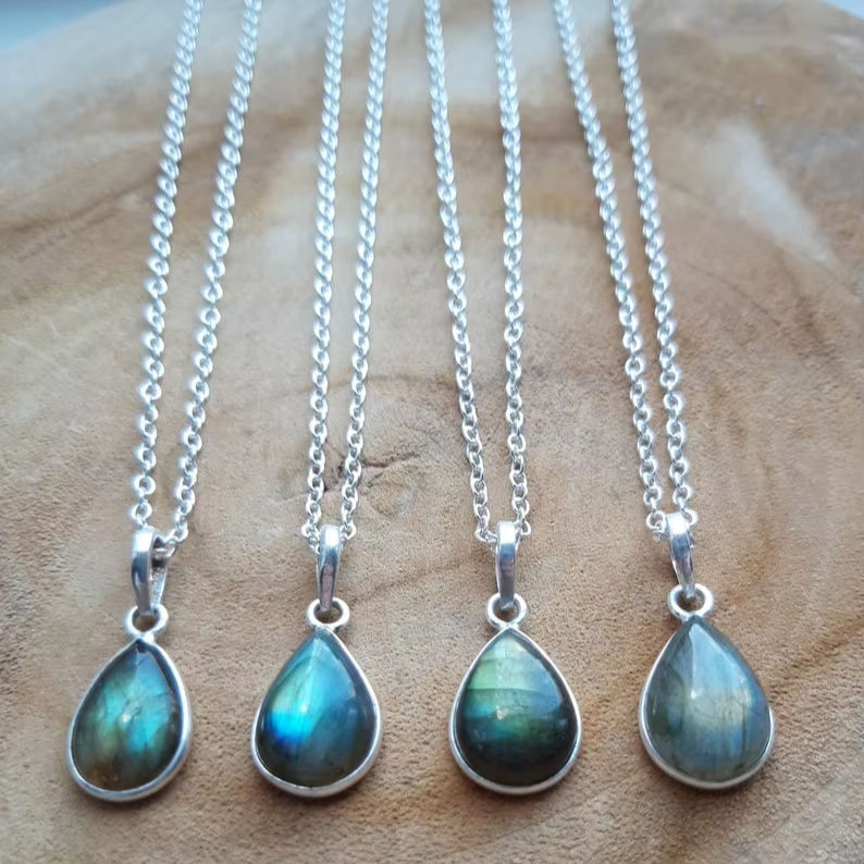 สร้อยคอแลบราโดไรต์ชุบทองวินเทจทำด้วยมือจี้เงินจี้หยดน้ำสีรุ้งอัญมณีสำหรับการหมั้นของผู้หญิง