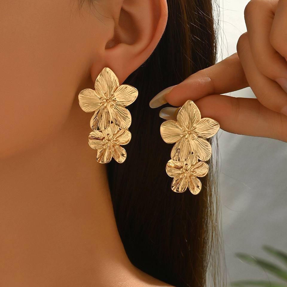 ต่างหูโลหะชุบทองวินเทจ ต่างหูรูปดอกไม้เล็กน่ารัก ต่างหูสแตนเลสรูปดอกไม้ สำหรับผู้หญิง สวยสง่า เหมาะสำหรับใช้ในชีวิตประจำวัน