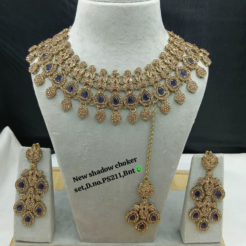 Products Name:Gold-Plated Bridal Shadow Choker Set with Earrings & Maang Tikka