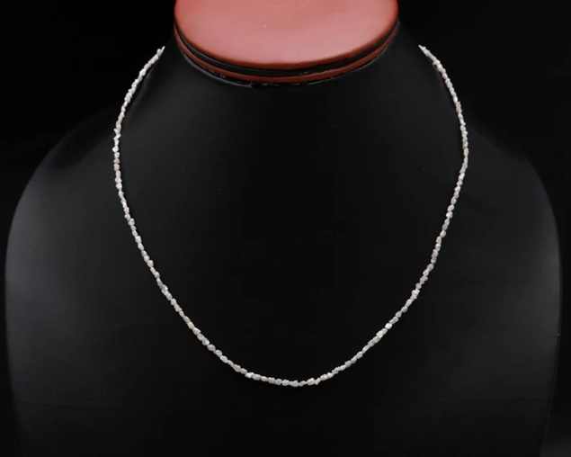 สร้อยคอเพชรสีขาวชุบทองวินเทจ925เงินแท้แฮนด์เมดเครื่องประดับพลอยส่วนบุคคลลูกปัดเพชรธรรมชาติหยาบ