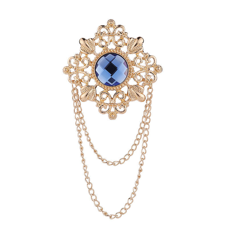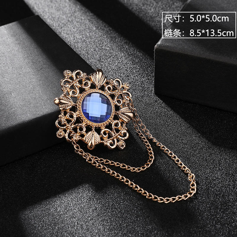 เข็มกลัดชุดสูทผู้ชายแบบวินเทจ ชุบทองบนเงิน ประดับพลอยรูปดอกไม้ พร้อมสายคล้องปกเสื้อ ดีไซน์สั่งทำพิเศษ ของขวัญสำหรับงานแต่งงานและงานหมั้น