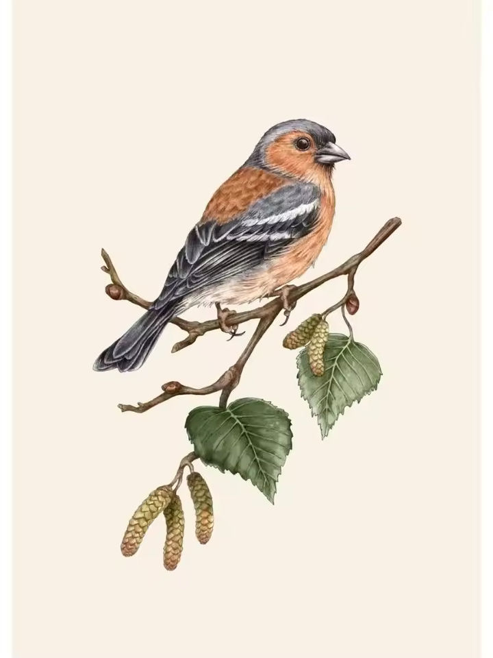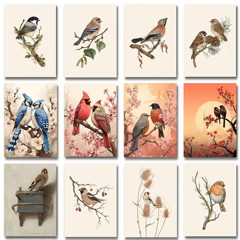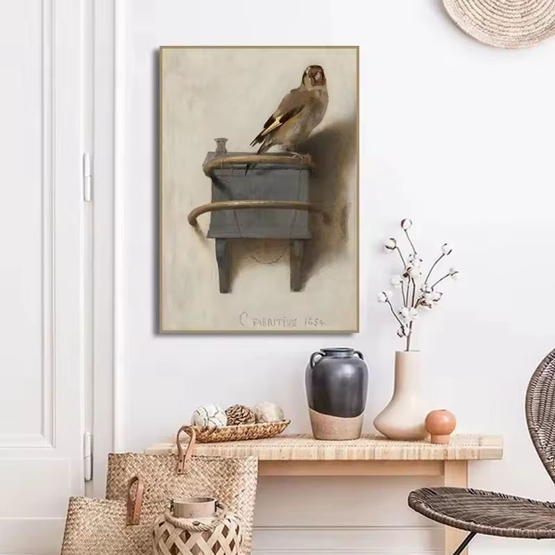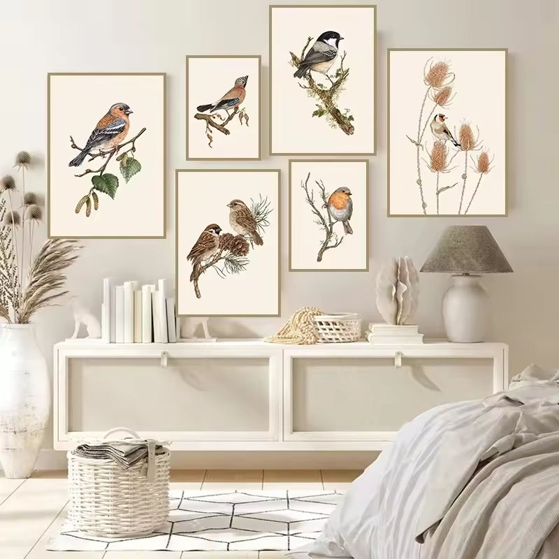 โปสเตอร์นอร์ดิกรูปนกภูมิทัศน์สไตล์วินเทจโกลด์ฟินช์พิมพ์ภาพติดฝาผนังสไตล์การออกแบบตกแต่งห้องนั่งเล่น
