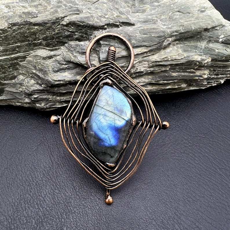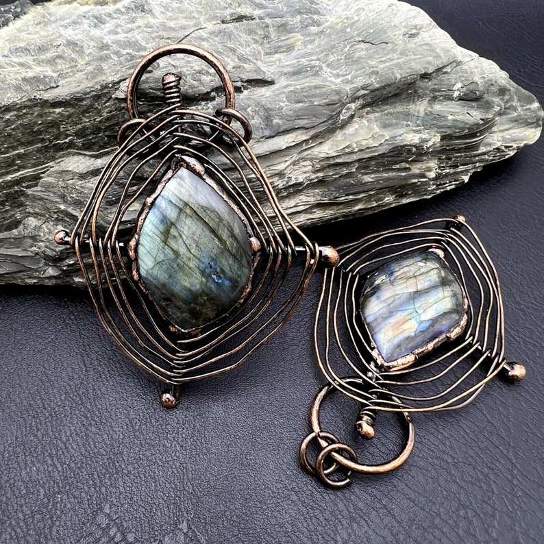 สร้อยคอวินเทจสไตล์โกธิคแฟลชลาบราดอไรต์พร้อมใยแมงมุมบัดกรีดีไซน์แฮนด์เมด