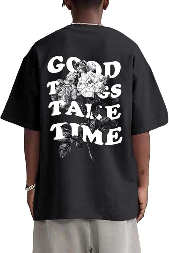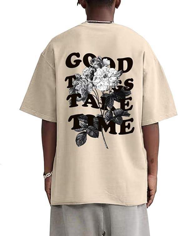 เสื้อยืดลายกราฟิกวินเทจสำหรับผู้ชาย ทรงโอเวอร์ไซส์ พิมพ์ลายดอกไม้และตัวอักษร สไตล์เรโทร สตรีทแวร์ เสื้อยืดลำลองทรงหลวม ผ้าฝ้าย 100% ป้องกันการยับ