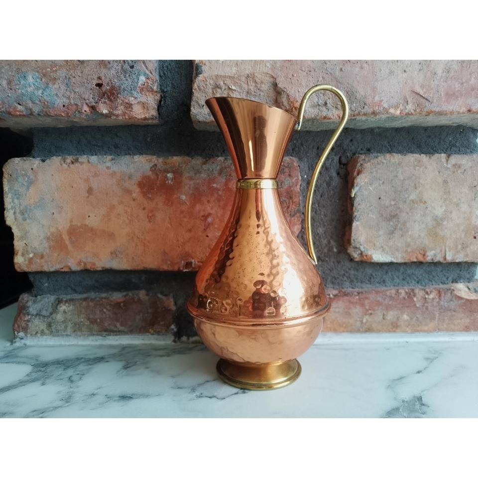 เหยือกทองแดงทุบสไตล์วินเทจตกแต่งที่จับทองเหลืองสไตล์ออตโตมันสำหรับห้องครัวที่บ้านของตกแต่งแบบโบโฮ