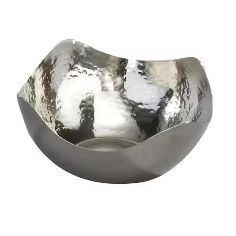 ชามเสิร์ฟโลหะแบบวินเทจลายตอก-ทนทานและเป็นมิตรกับสิ่งแวดล้อมสำหรับร้านอาหาร งานเลี้ยง งานแต่งงาน ตกแต่งโต๊ะอาหาร-ชามใส่ผลไม้/สลัด