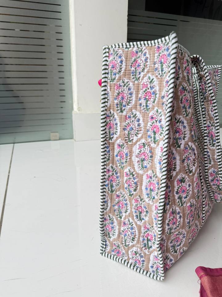 กระเป๋าโท้ทลายดอกไม้สไตล์วินเทจ ทำมือจากผ้าฝ้ายอินเดีย พิมพ์ลายด้วยมือ สำหรับฤดูใบไม้ผลิ/ฤดูหนาว ฤดูร้อน สำหรับผู้หญิง ปิดด้วยซิป
