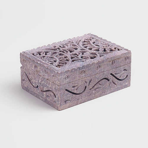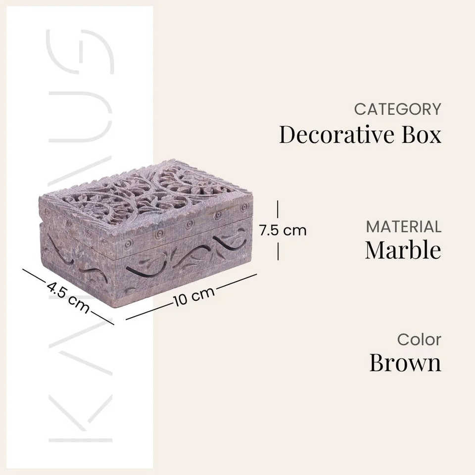 กล่องเก็บเครื่องประดับหินอ่อนสีเทาแกะสลักด้วยมือสไตล์วินเทจ กล่องสมบัติสุดหรู ขนาด 10x4.5x7.5 ซม.