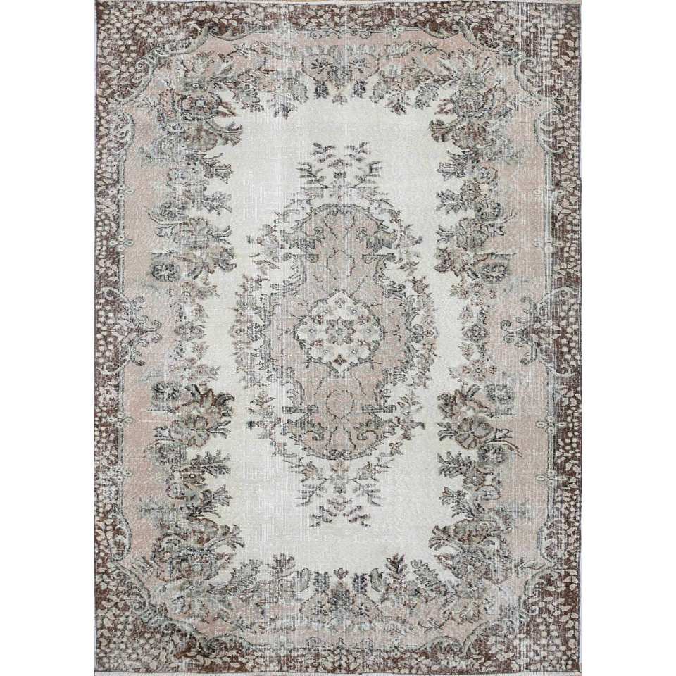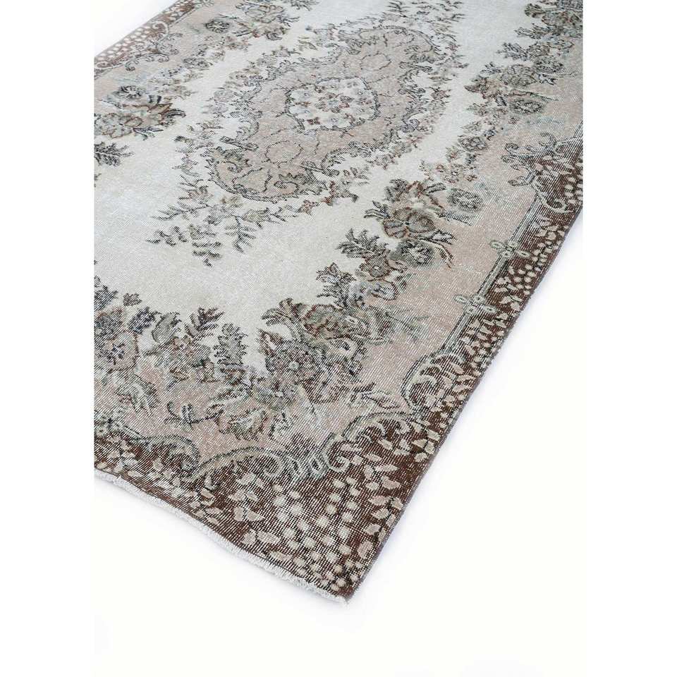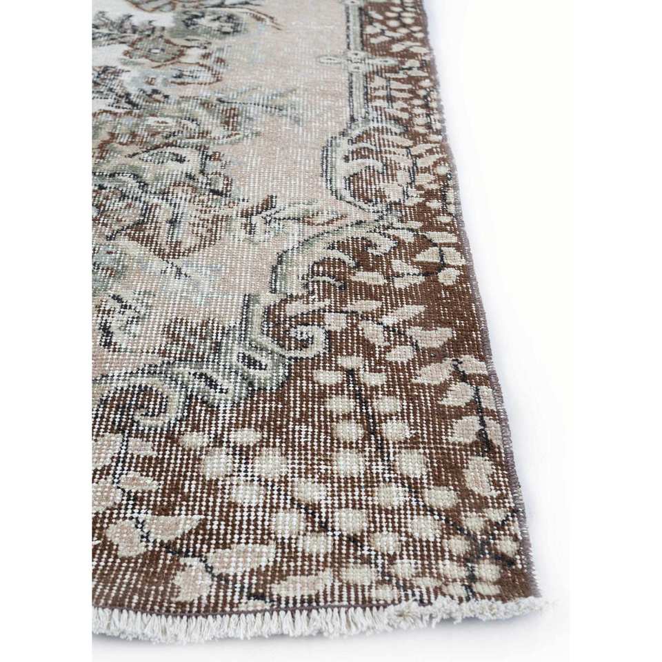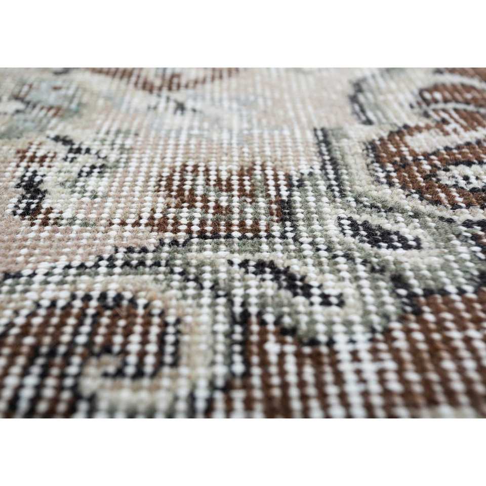 พรมขนสัตว์ถักมือสไตล์วินเทจ สีเบจและสีน้ำตาล ลายเหรียญรูปทรงสี่เหลี่ยมผืนผ้า ลวดลายนามธรรม สำหรับห้องนั่งเล่นหรือทางเดินในบ้าน รุ่น Pae-3294