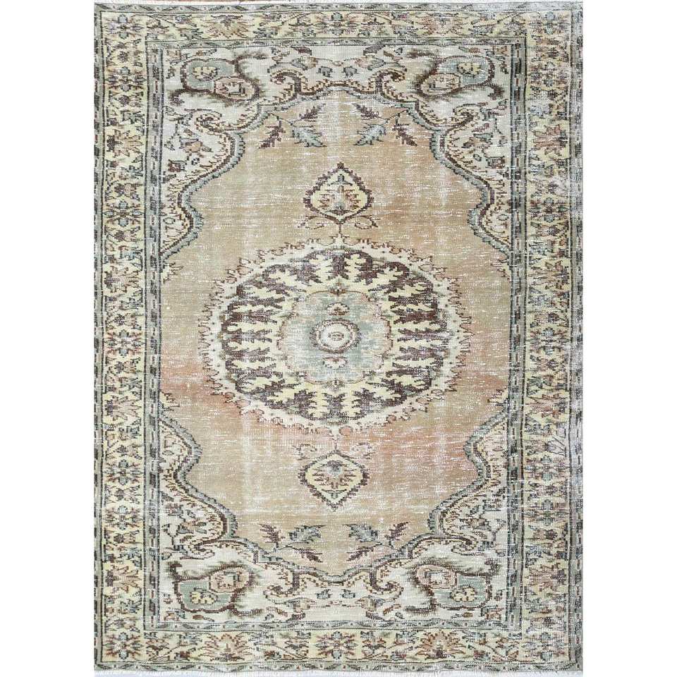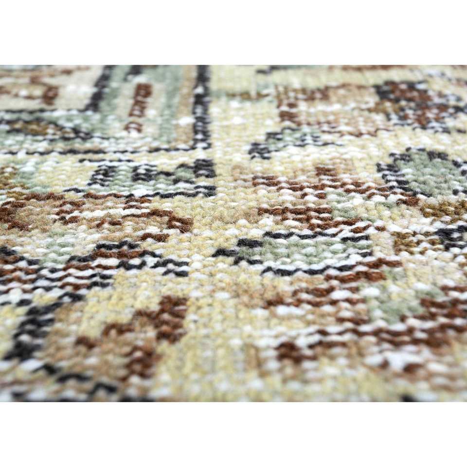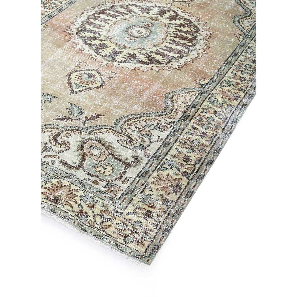 พรมขนสัตว์ถักมือสไตล์วินเทจ สีเบจและสีน้ำตาล ลายเหรียญแบบนามธรรม รูปทรงสี่เหลี่ยมผืนผ้า สำหรับห้องนั่งเล่นหรือทางเดินในบ้าน รุ่น Pae-2793