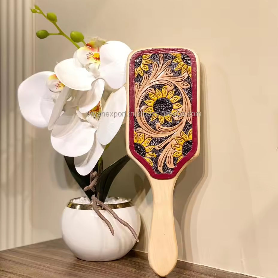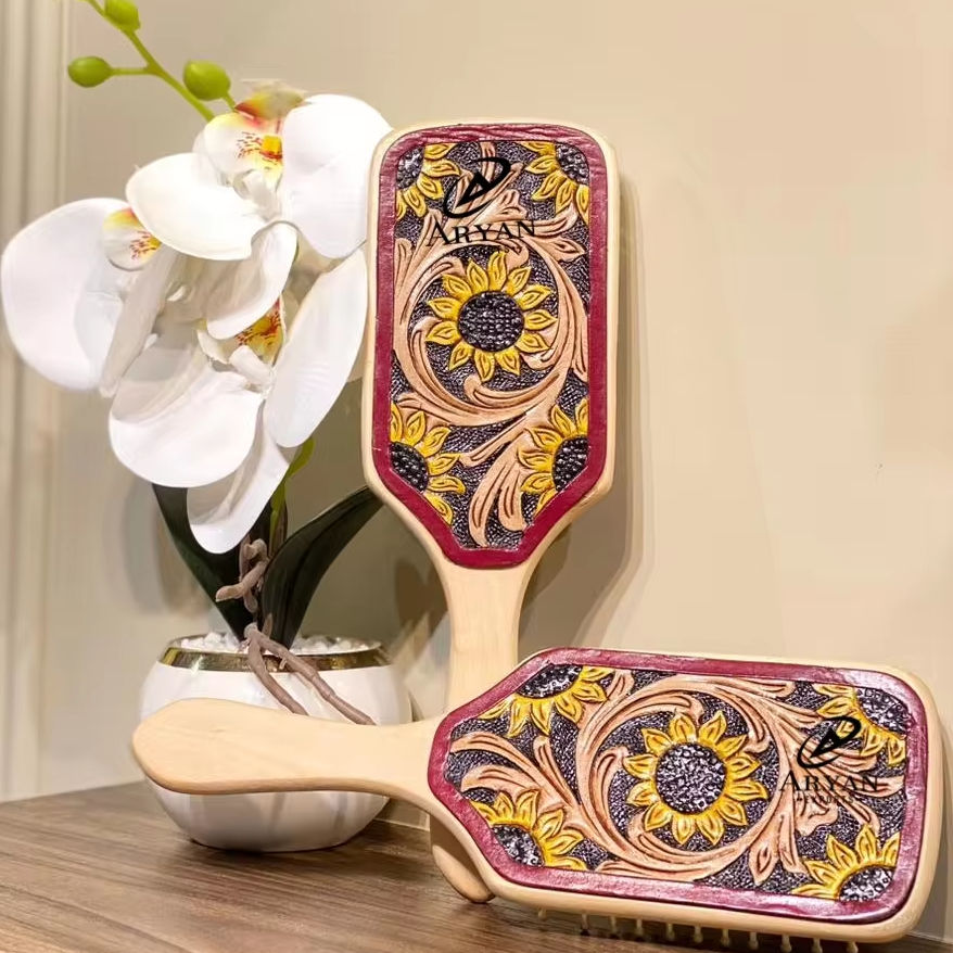 Type:Hand Tooled Leather Cowgirl Sunflower Hair Brush Combs