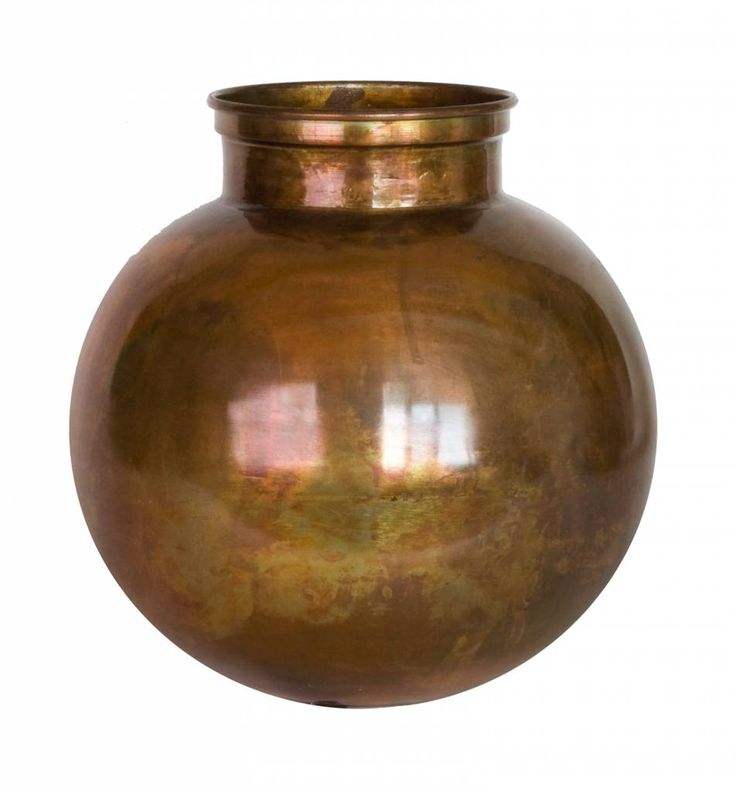 แจกันทองแดงแท้ทำมือสไตล์วินเทจและกระถางน้ำ - แจกันดอกไม้โลหะทรงกลมโบราณสำหรับตกแต่งบ้าน โรงแรมหรู