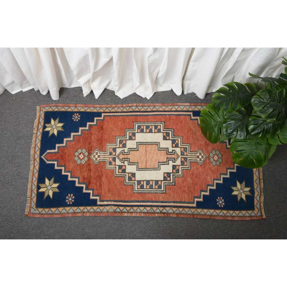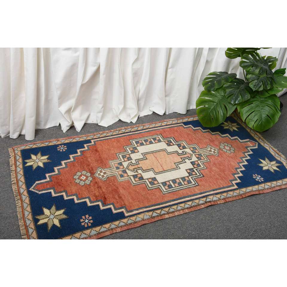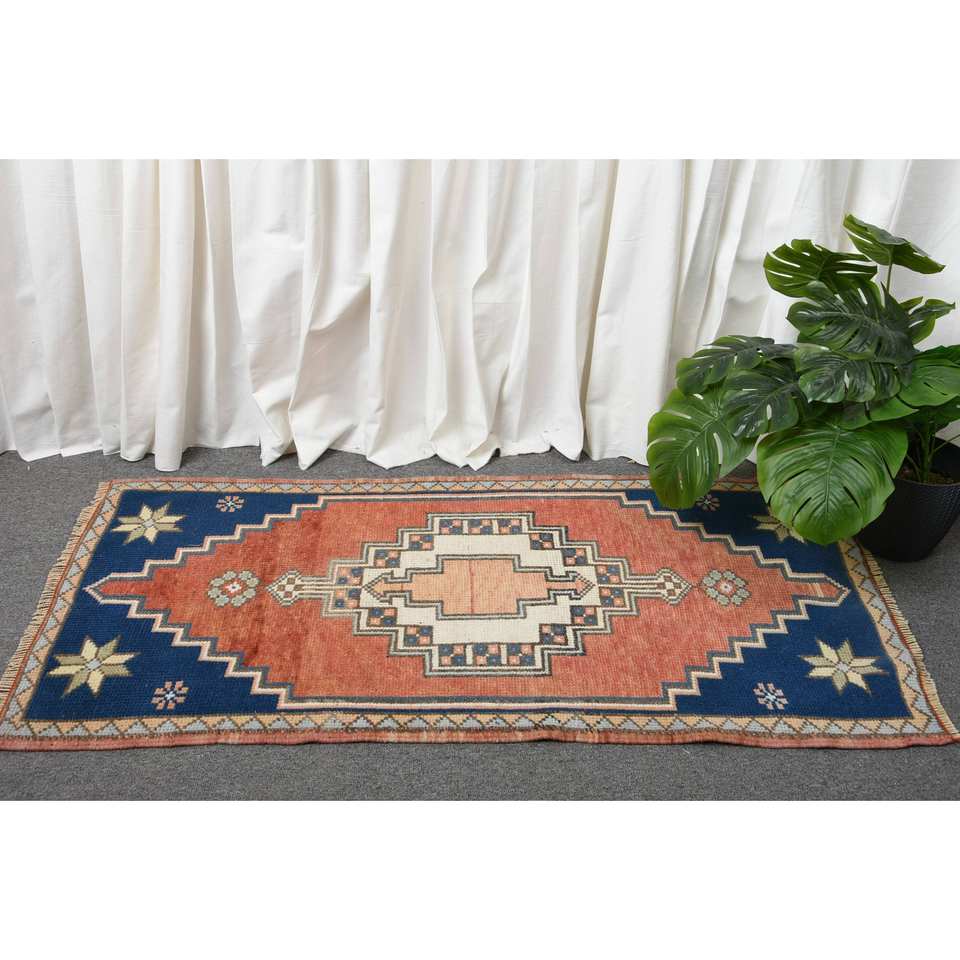 พรมขนสัตว์ตุรกี2 3.9ft แบบวินเทจทำด้วยมือสไตล์คลาสสิกพื้นที่ขนาดใหญ่สี่เหลี่ยมผืนผ้าสีแดงสีน้ำเงินเย็บปะติดปะต่อกันลายแอบสแตรกต์รูปลาเท็กซ์