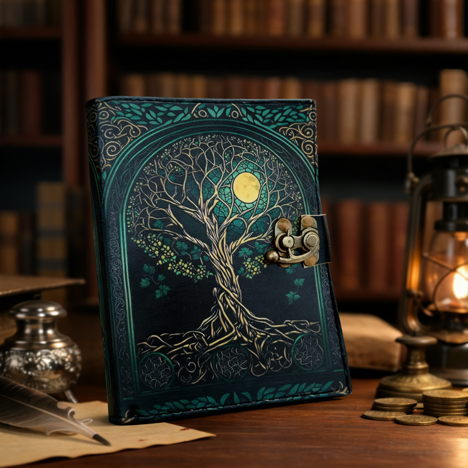 สมุดบันทึกหนังทำมือวินเทจขนาด A5 ของขวัญปรับแต่งได้ อุปกรณ์คาถาโบราณ สมุดโน้ตวิคคา สมุดสวดมนต์ กระดาษกรีกแบบลึกลับ