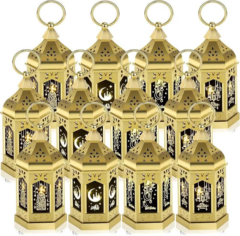 Vintage Handmade Brass Gold LED Candle Lantern Set Ramadan Eid Islamic Hanging Table Light Home Festival Decor Gift