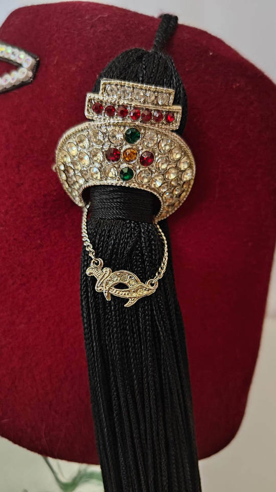 Product name:Fez Hat Pure White Silk With Thread Hand Embroidery and Rhinestones