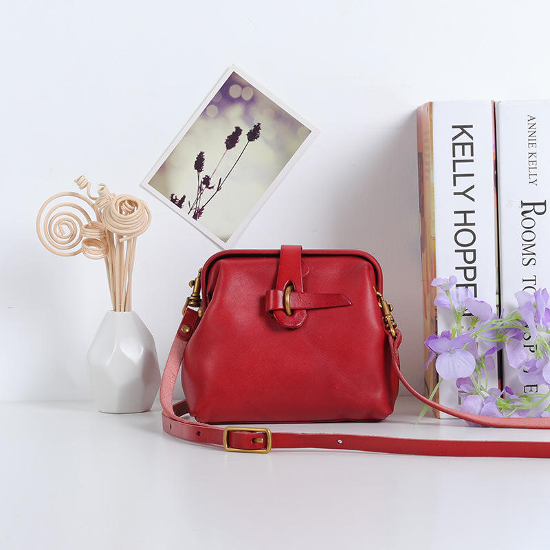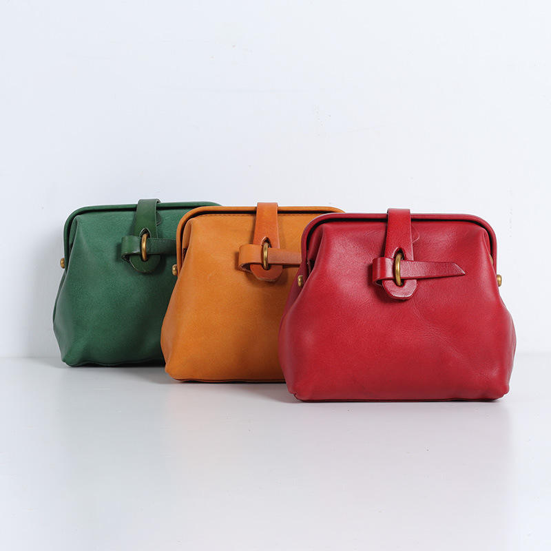 กระเป๋าใส่เอกสารขนาดเล็กทำจากหนังสีล้วนสไตล์ยุโรปทำด้วยมือชั้นหนึ่งสไตล์วินเทจ