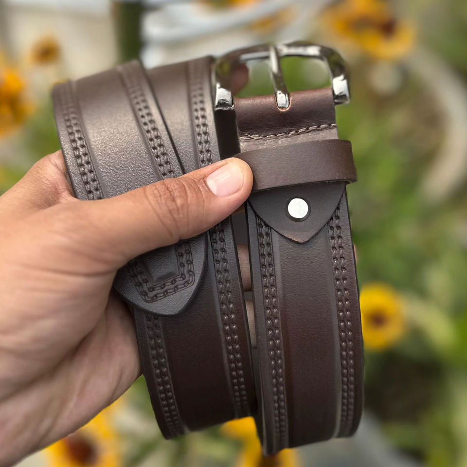 เข็มขัดหนังทำมือสไตล์วินเทจ พร้อมลายปักและหัวเข็มขัดทองแดงทนทานสำหรับการใช้งานในชีวิตประจำวัน