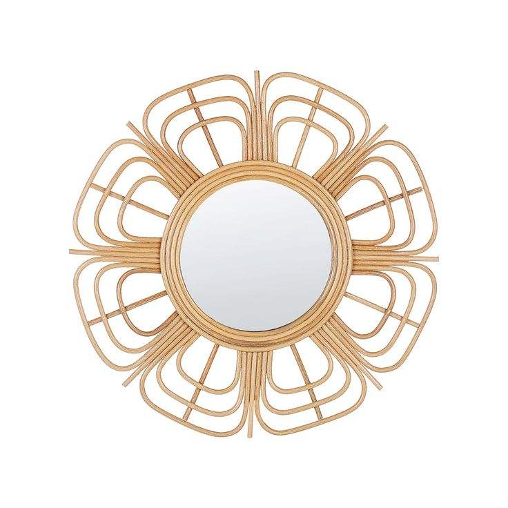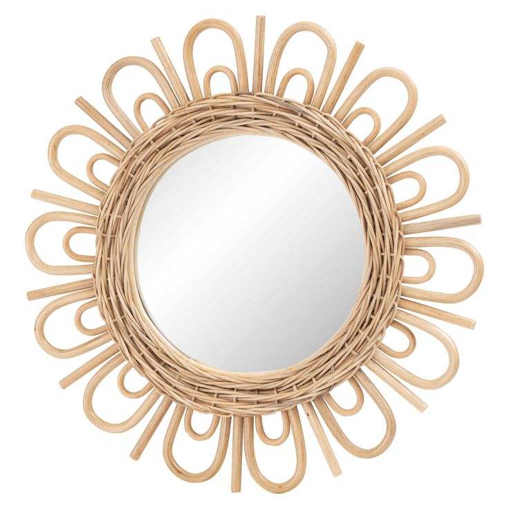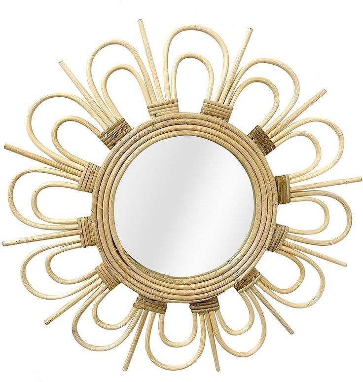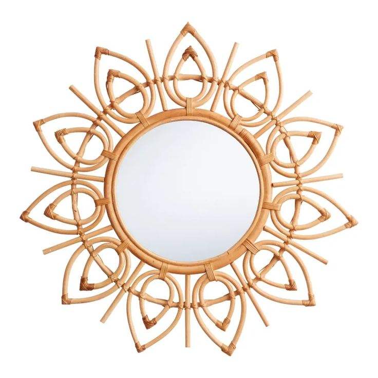 กรอบกระจกหวายดอกไม้ทรงกลมทำด้วยมือสไตล์วินเทจสีธรรมชาติสำหรับตกแต่งผนังในห้องน้ำห้องนั่งเล่นบ้านโรงแรมทำจากอินเดีย