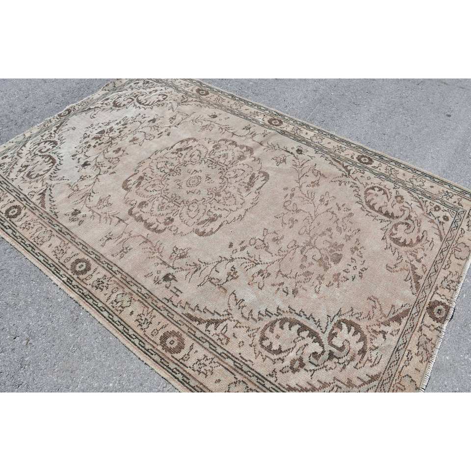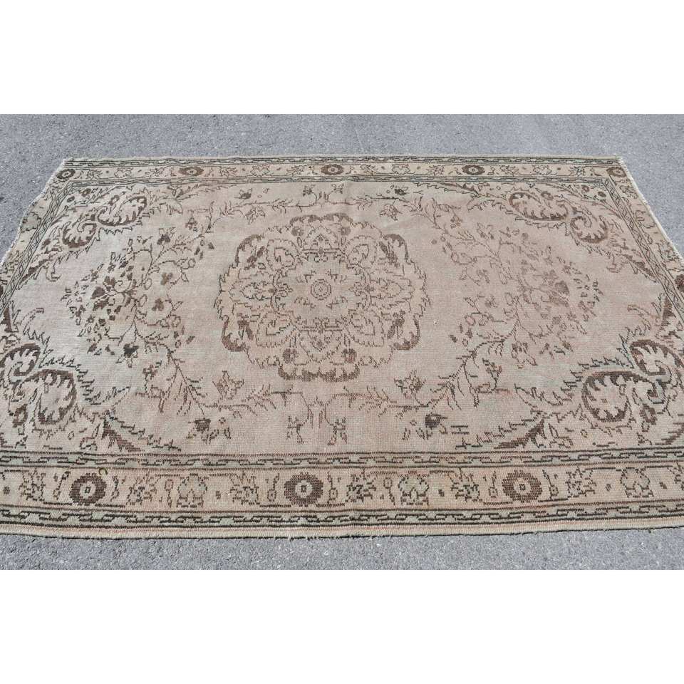 พรมแท็บริซสไตล์ตุรกีทำด้วยมือแนววินเทจ5.5 x 8.3ft คลาสสิคสีเบจสีน้ำตาลปะต่อดีไซน์วัสดุผ้าขนสัตว์สำหรับวัยรุ่น