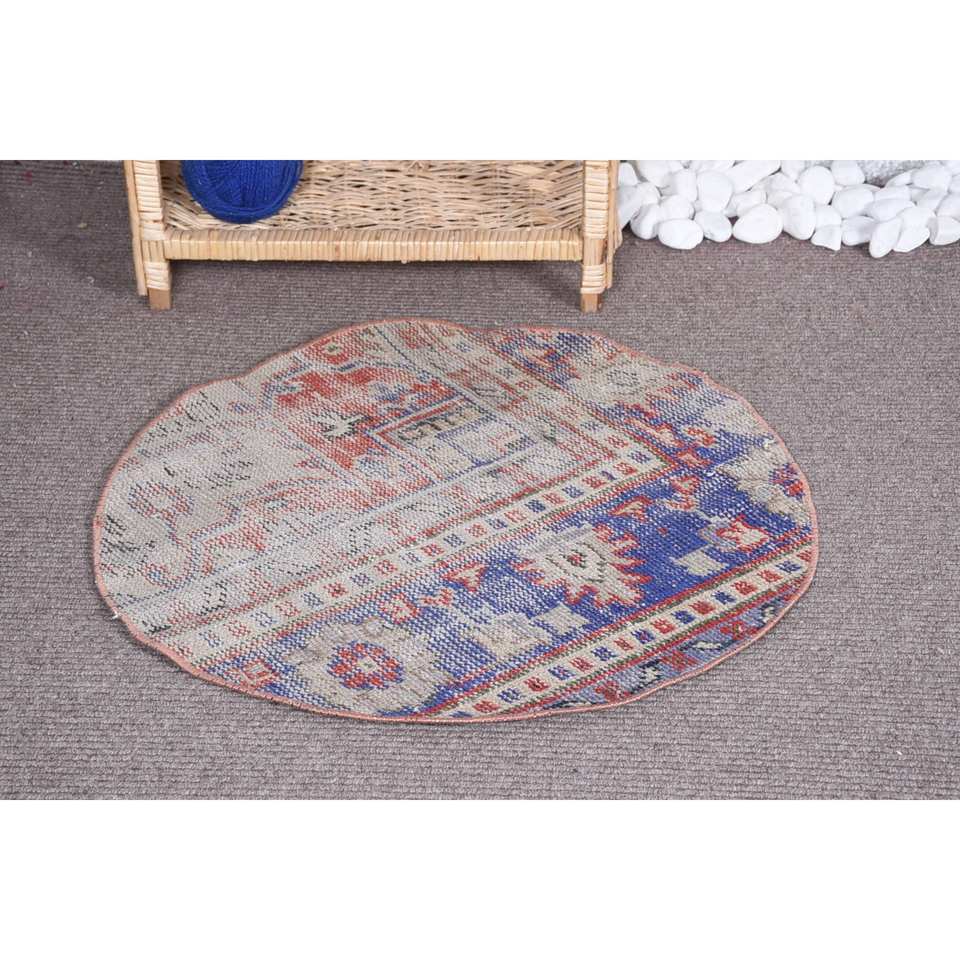 พรมขนสัตว์วินเทจทำด้วยมือพรมปูพื้นขนาดใหญ่2.3ft x 2.3ft สี่เหลี่ยมผืนผ้าสำหรับโถงทางเดินพรมปอกระเจาห้อง