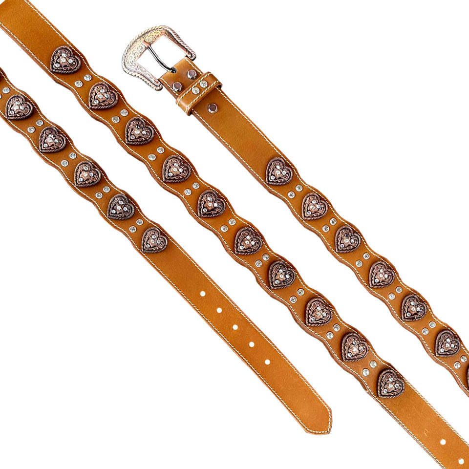 เข็มขัดหนังแท้สไตล์วินเทจคลาสสิค หัวทองเหลืองรูปหัวใจ ขนาด 40 มม. ปรับแต่งได้
