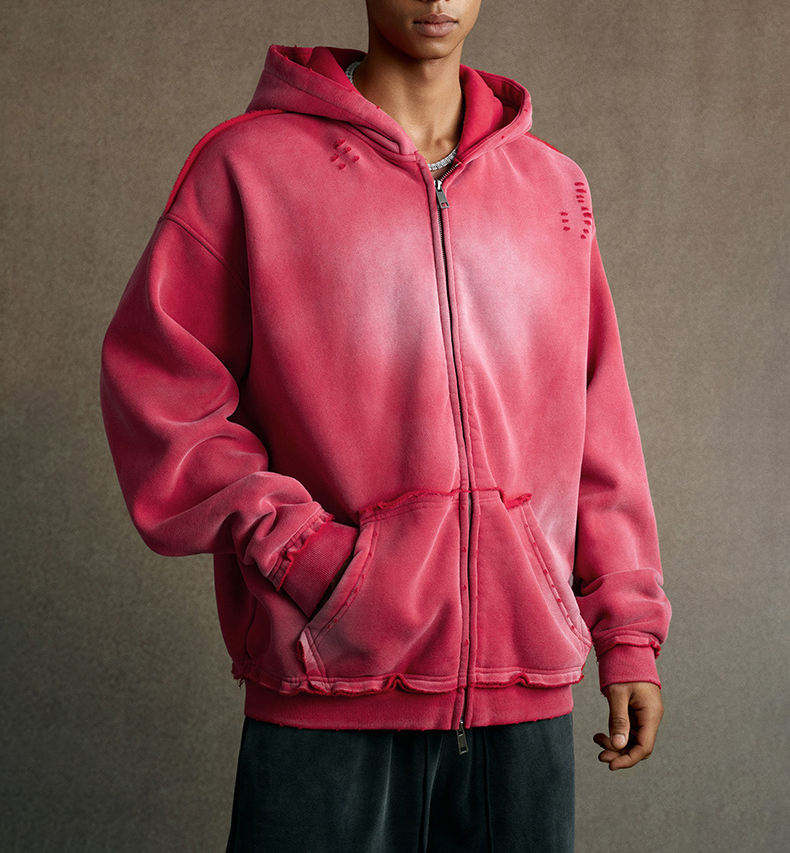 เสื้อฮู้ดดี้วินเทจทรงโอเวอร์ไซส์ หนัก 400 กรัม ผ้าคอตตอน 100% ย้อมสีแบบแอซิดวอช ทำสีแบบสเปรย์ ดีไซน์ดิสเทรส สำหรับผู้ชาย