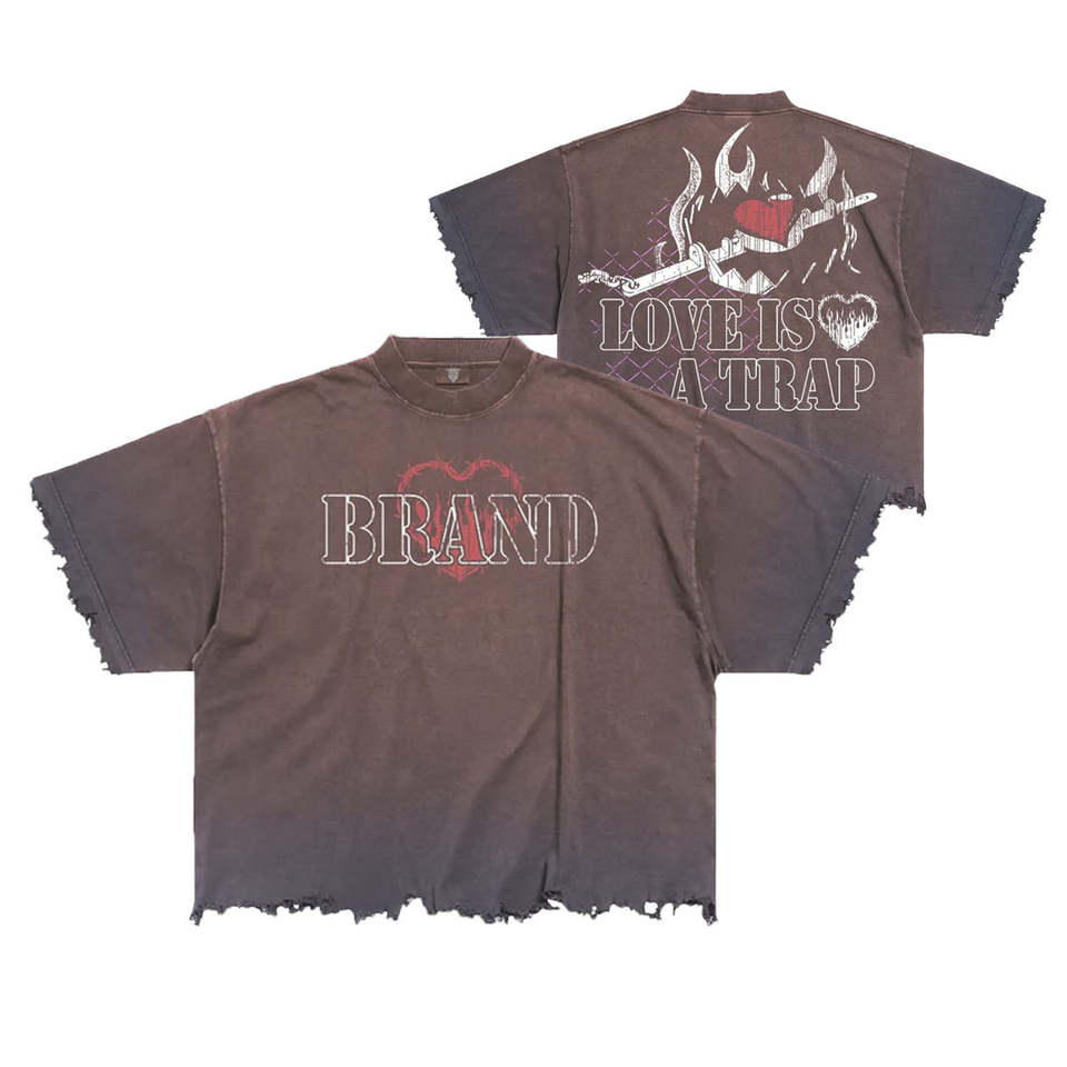 เสื้อยืดผ้า100% โอเวอร์ไซส์แนววินเทจเสื้อถักลายไม้ไผ่แขนสั้นผ้ากรดซักสีดำ