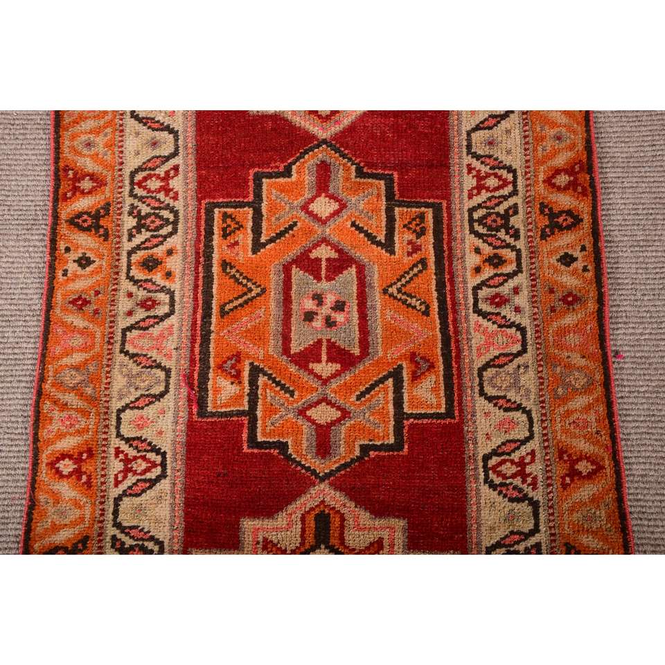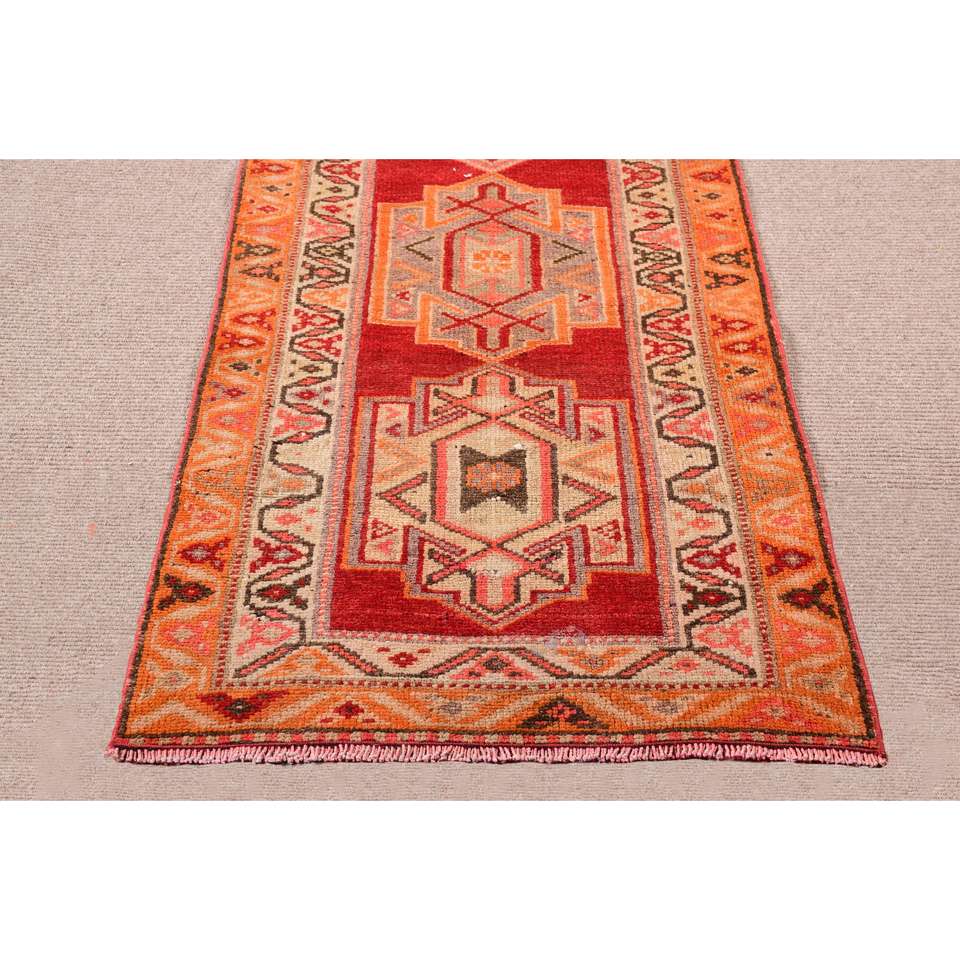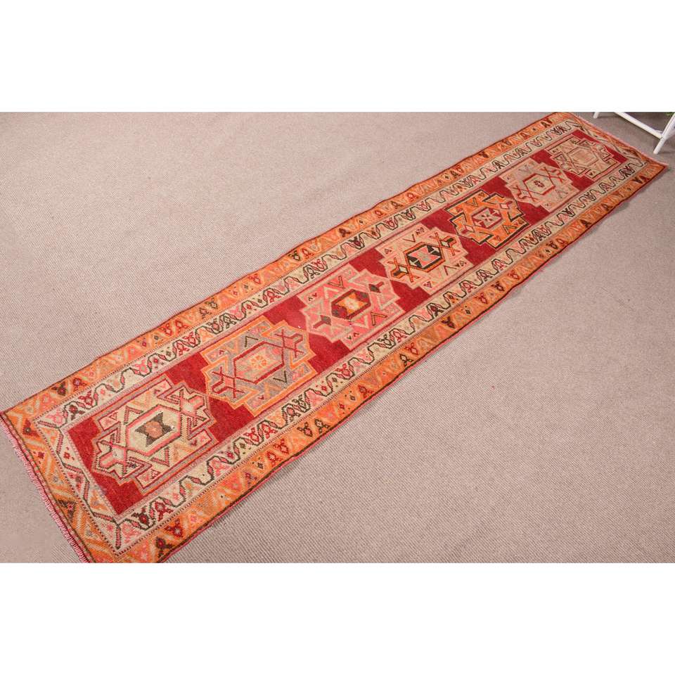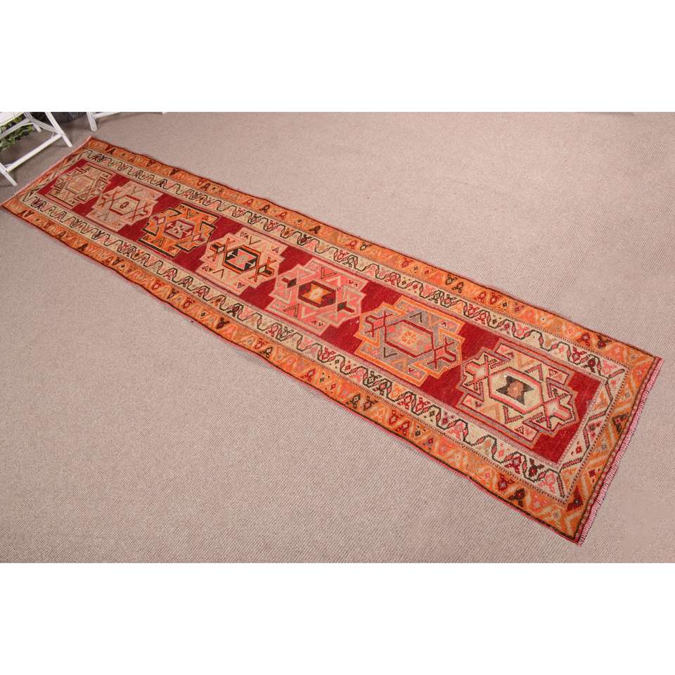 พรมวินเทจ Herki Runner ขนาด 2.7x12.1 ฟุต (81x368 ซม.) พรมขนสัตว์โมร็อกโกสีแดงตุรกี