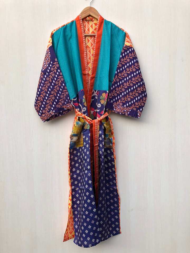 ชุดคลุมชายหาดสไตล์อินเดียวินเทจ ผ้าไหมซารีพิมพ์ลายดอกไม้ ความยาวระดับเข่า ชุดกิโมโนไซส์ใหญ่ เนื้อผ้านุ่ม เหมาะสำหรับฤดูร้อน สำหรับใส่ไปงานปาร์ตี้