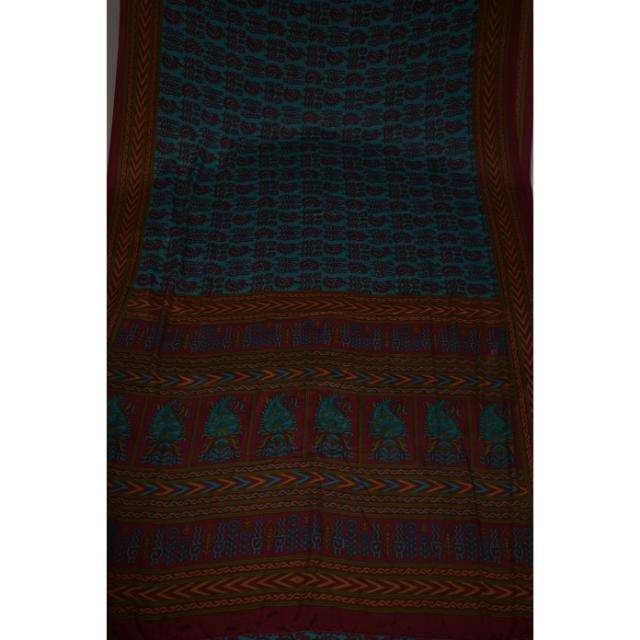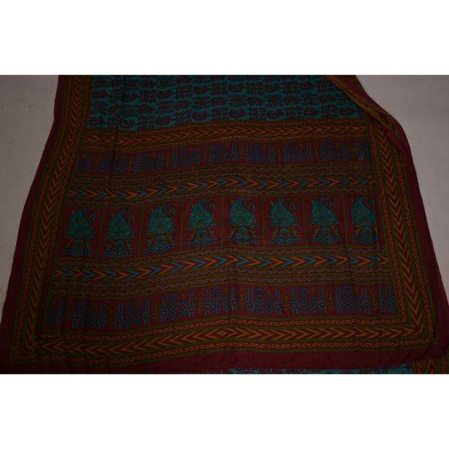 ผ้าส่าหรีวินเทจผ้าไหมพิมพ์ลายศิลปะผ้าไหมสารีโพลีสำหรับงานหัตถกรรมเย็บผ้าควิลท์และตกแต่งบ้าน