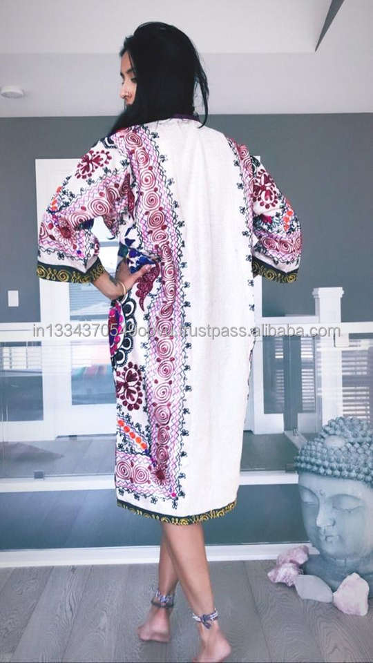 Suzani ชุดเดรสพื้นเมืองของผู้หญิง,ชุดเดรสสไตล์ฮิปปี้ปักลายดอกไม้โบโฮโบฮีเมียนแนววินเทจชนเผ่าอินเดีย