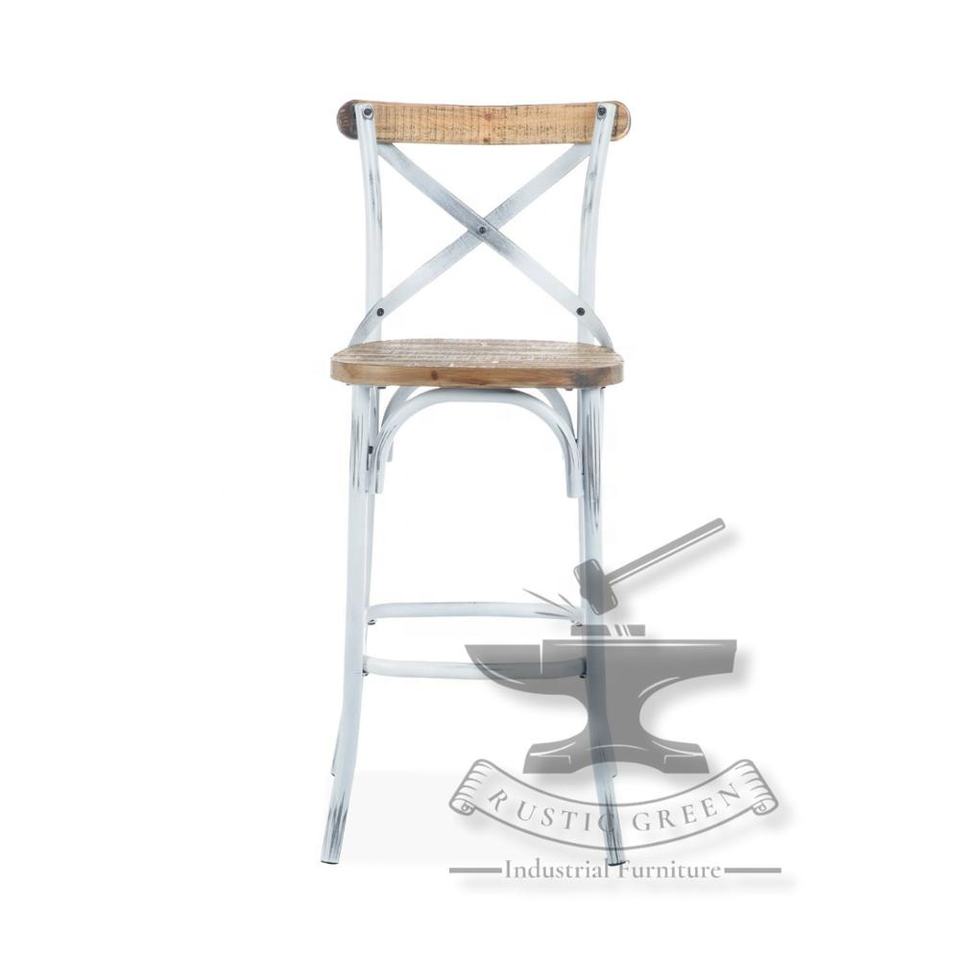 เก้าอี้บาร์แบบไขว้ด้านหลังทำจากไม้เหล็กสไตล์วินเทจอุตสาหกรรมปรับแต่งสีแข็งแรงทนทานสำหรับห้องครัวห้องนั่งเล่นห้องโรงเรียน