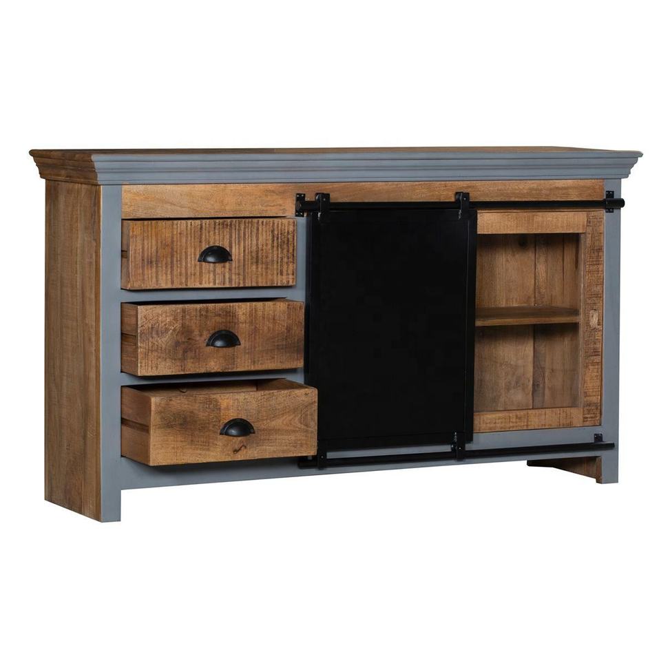 ตู้ไม้สามลิ้นชักอุตสาหกรรมวินเทจประตูบานเลื่อนไม้มะม่วงห้องนั่งเล่นตู้ไม้สีดำและหยาบ