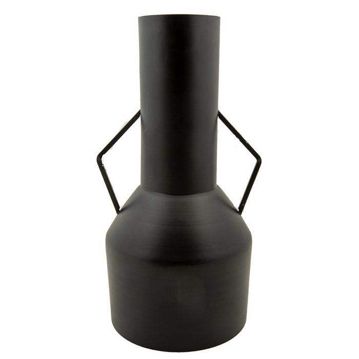แจกันเหล็กสีดำสไตล์วินเทจอินดัสเทรียล | แจกันโลหะตกแต่งสไตล์ชนบทพร้อมหูจับ แจกันเหล็กดัดทนทานสไตล์บ้านไร่