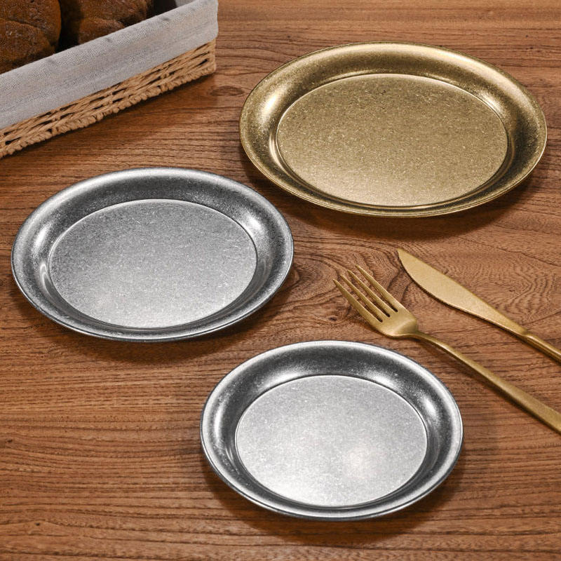 จานโลหะสไตล์วินเทจอุตสาหกรรม จานสแตนเลสสำหรับแคมป์ปิ้งกลางแจ้ง จานอาหารตะวันตก จานอาหารฝรั่งเศส จานใส่กระดูก