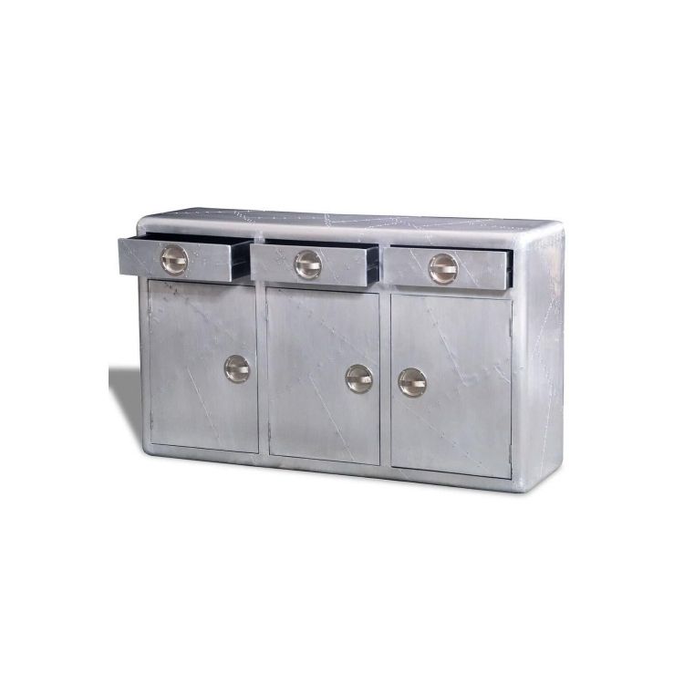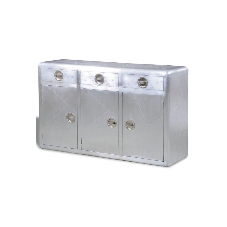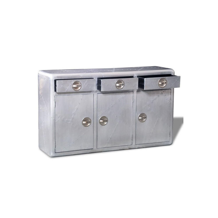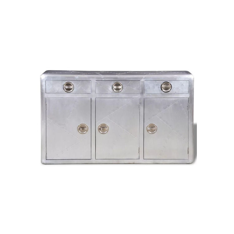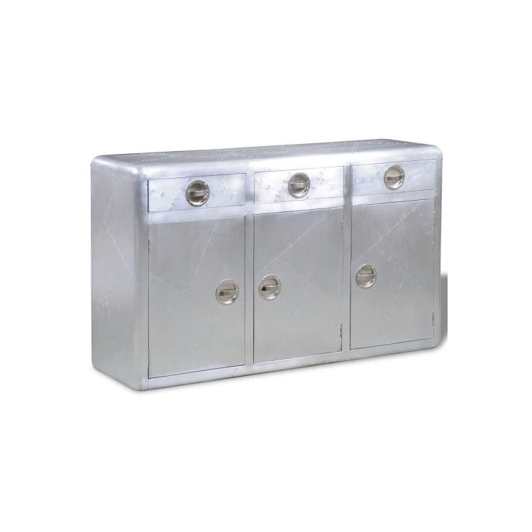 ตู้ไซด์บอร์ดสไตล์วินเทจอุตสาหกรรมแบบนักบิน พร้อมอะลูมิเนียม