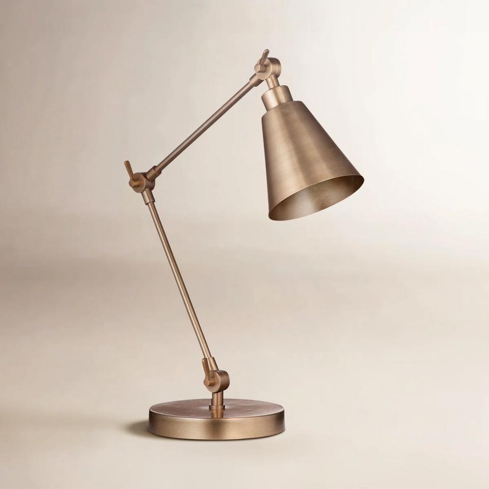 โคมไฟตั้งโต๊ะทองเหลืองสไตล์วินเทจพร้อมตัวโคมสลักลาย โคมไฟตกแต่งภายในแบบราชวงศ์