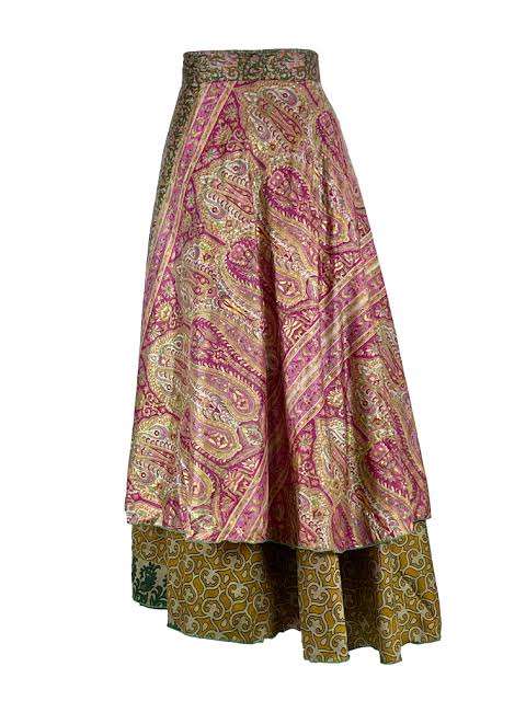กระโปรงแม็กซี่แบบพันรอบตัว ลายดอกไม้สไตล์วินเทจ ผ้าไหมซารีถักสองชั้นแบบกลับด้านได้ เป็นมิตรกับสิ่งแวดล้อม ป้องกันไฟฟ้าสถิตย์ สไตล์งานเทศกาล
