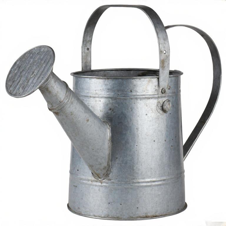 บัวรดน้ำสังกะสีที่ได้แรงบันดาลใจจากวินเทจมีด้ามจับคู่และหัวฉีดกุหลาบแบบคลาสสิกสำหรับการรดน้ำบนเตียงดอกไม้อย่างอ่อนโยน