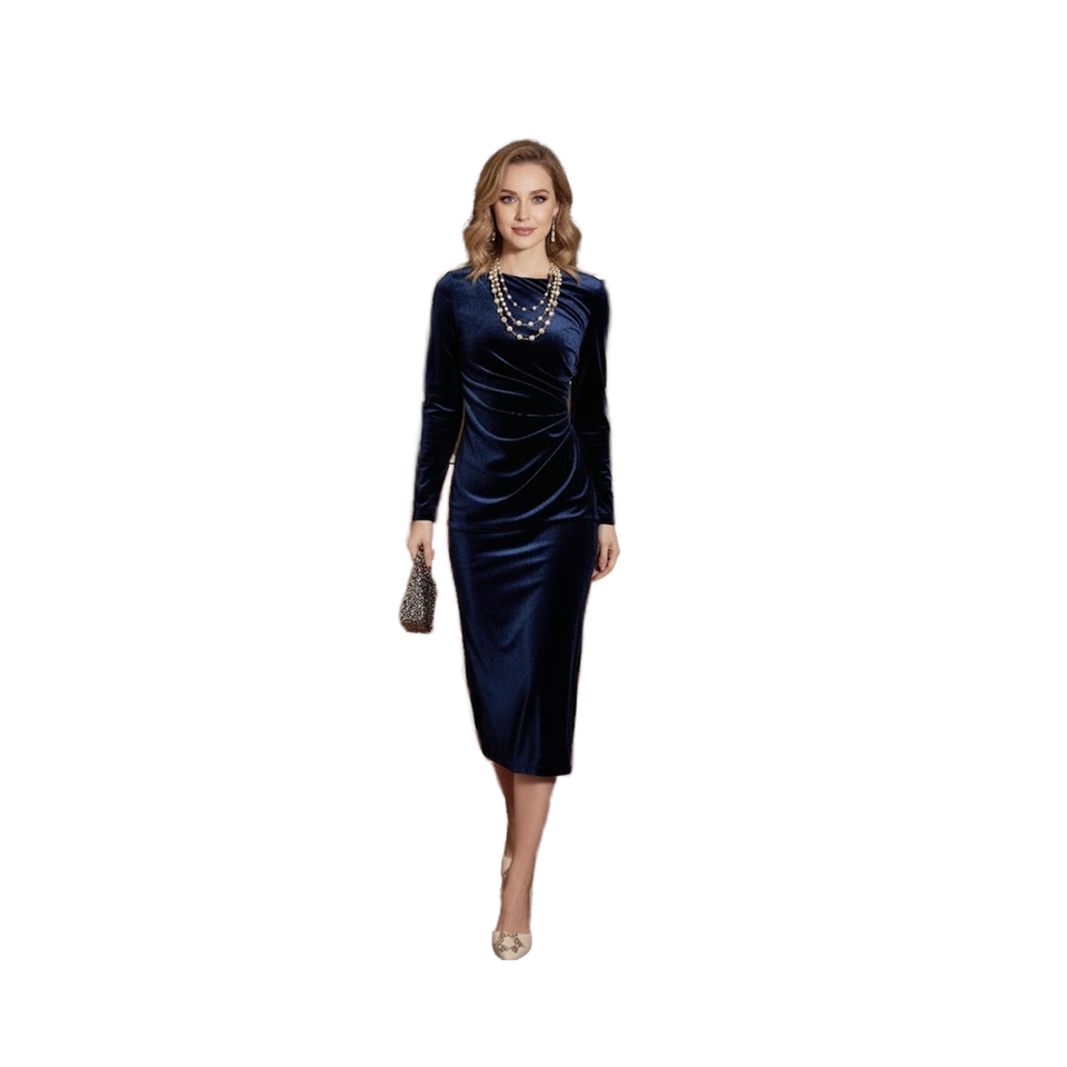 ชุดราตรีกำมะหยี่แขนยาวสไตล์วินเทจสำหรับผู้หญิง กำมะหยี่สีน้ำเงินแซฟไฟร์สุดหรู ผลิตด้วยเทคนิค ODM อย่างประณีต ผลิตในอินเดีย