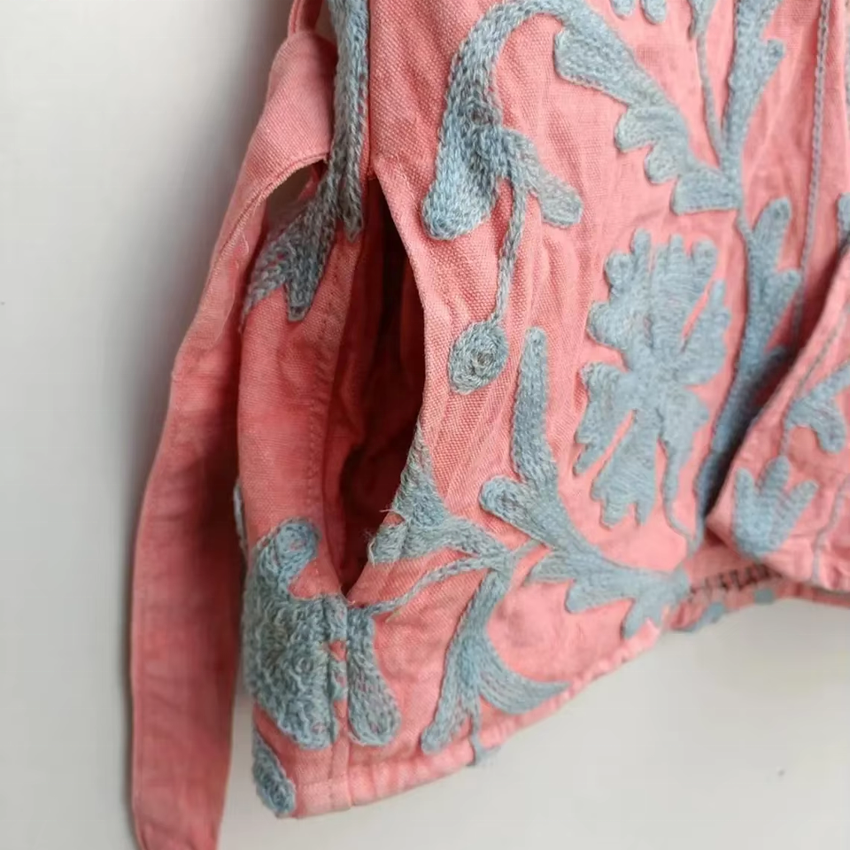 เสื้อกั๊กกำมะหยี่สีชมพูสไตล์วินเทจปักลายดอกไม้สำหรับฤดูหนาว